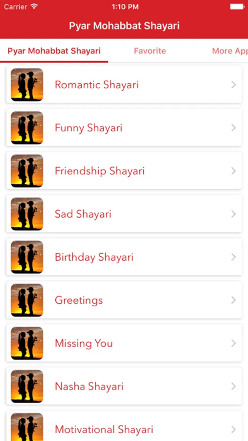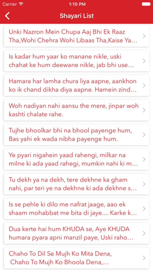 Pyar Mohabbat Shayari app is a great status application having various categories like Hindi,English and Other.