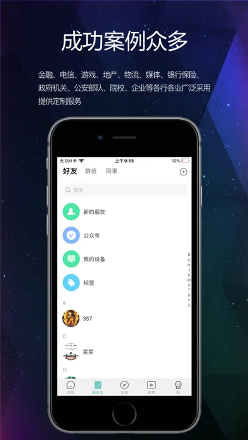 1. address book, supporting friend validation or non verification, two-dimensional code, label grouping, pulling black, my colleagues, public numbers, multiple entry, my phone sending messages to my computer, etc.