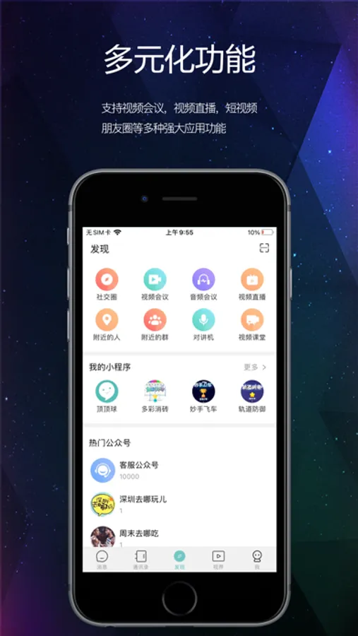 3. group chat, support bulletin, @ group members, group members, group validation, group nicknames, group management, number of readers, video conferencing, etc., to support 10000 people.