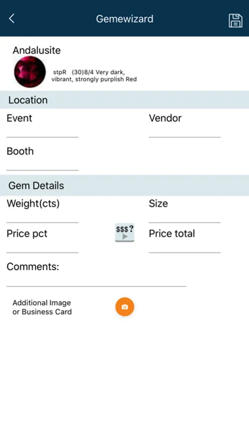 My Gemewizard enables users to quickly and accurately capture (or upload) a gem image, identify its exact color, and communicate that information, together with additional information such as the gem vendor and the event it was presented, to a third party via email, sms messages, WhatsApp, etc.