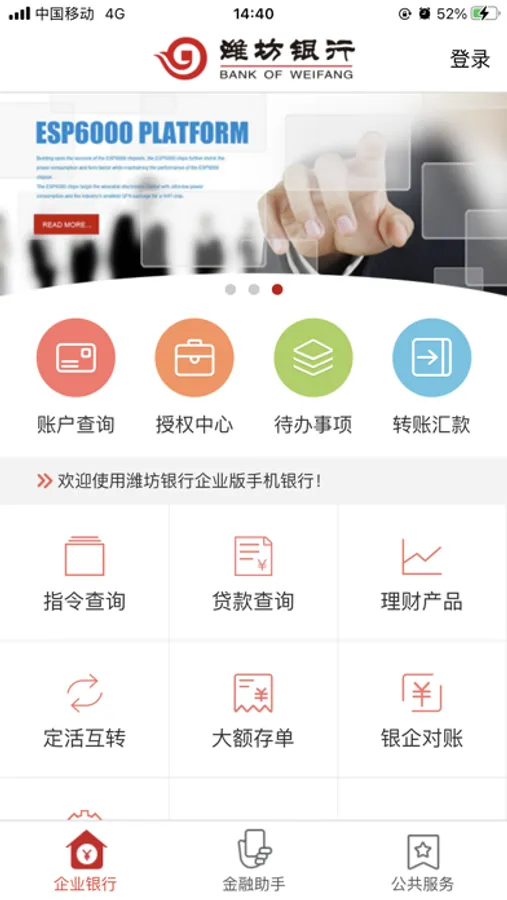 潍坊银行企业手机银行让您随时随地掌握公司财务信息,除了对公账户外,该产品也可以绑定对私账户,让查询变得简单起来。