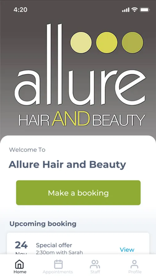 The Allure Hair and Beauty app makes booking your appointments and managing your loyalty points even easier. You're just a few taps away from feeling good and looking great!