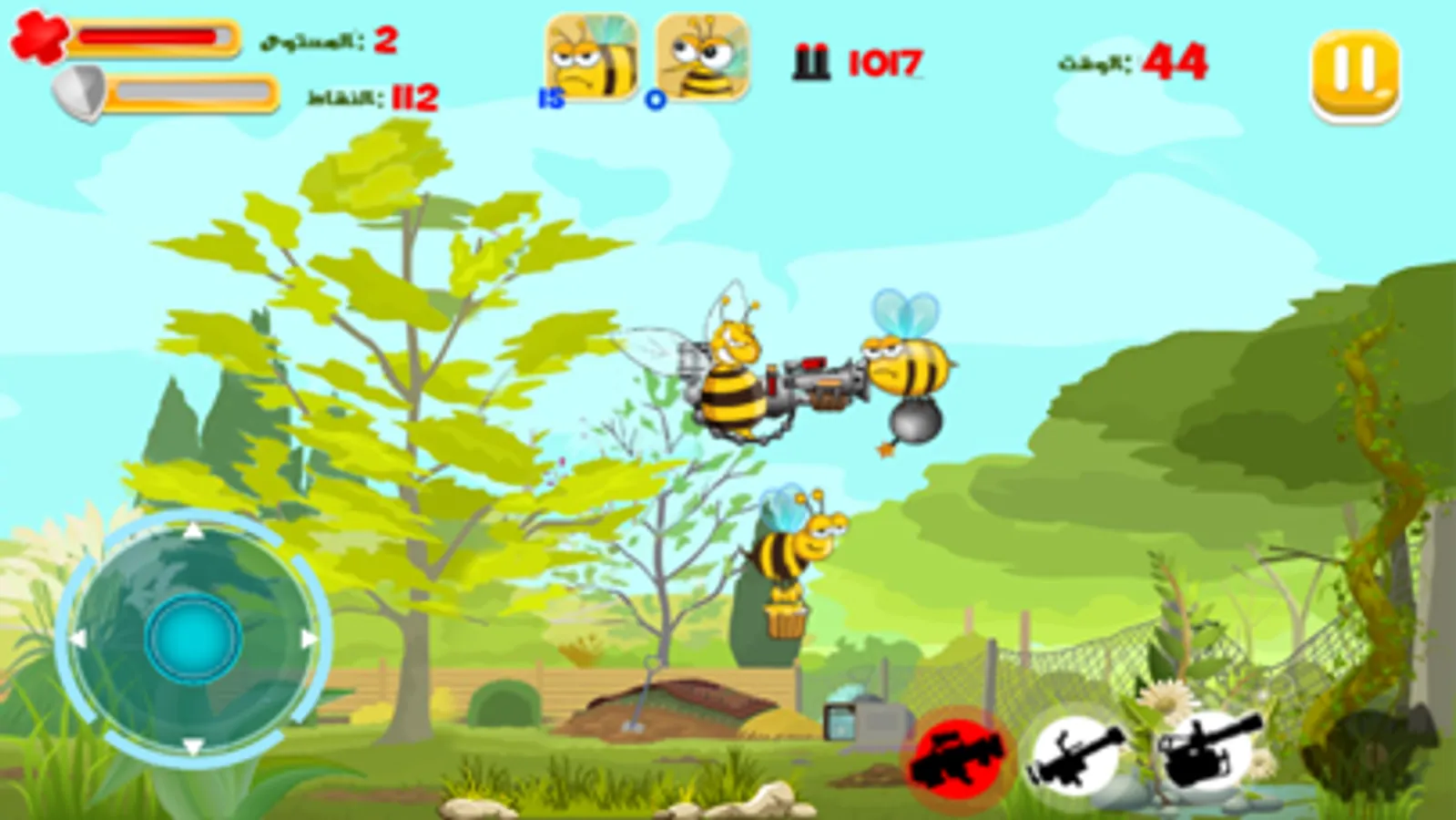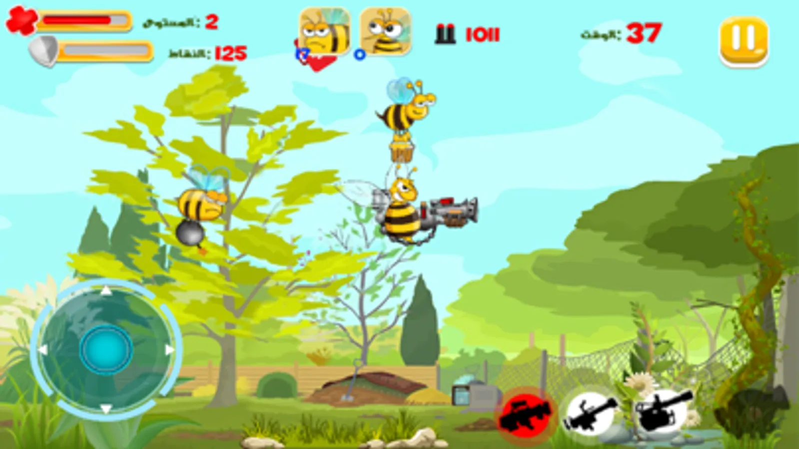 عليك القضاء ومواجهة النحلات العدوة المسلحة التي تحمل القنابل وعليك حماية وعدم التعرض للنحلات التي تحمل العسل