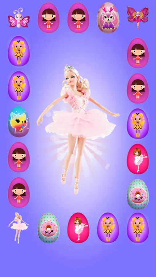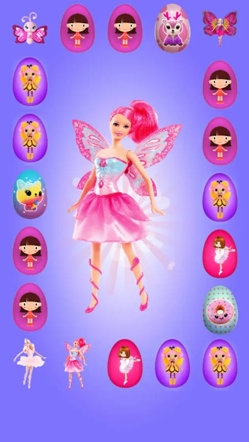 In this game you will find a plenty of eggs and a lot of interactive surprises to play with. You will find many gifts to collect like Barbie dolls,Butterflies,Ponies ,Ballerinas, Mermaids,Princesses ...