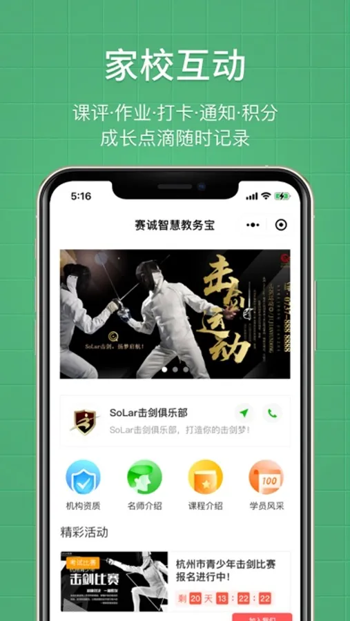●家校互联:上课、签到、课评、续费提醒等重要通知;师生互评与分享(支持视频图片文字);布置作业;成长档案;品牌小程序;嵌入机构公众号