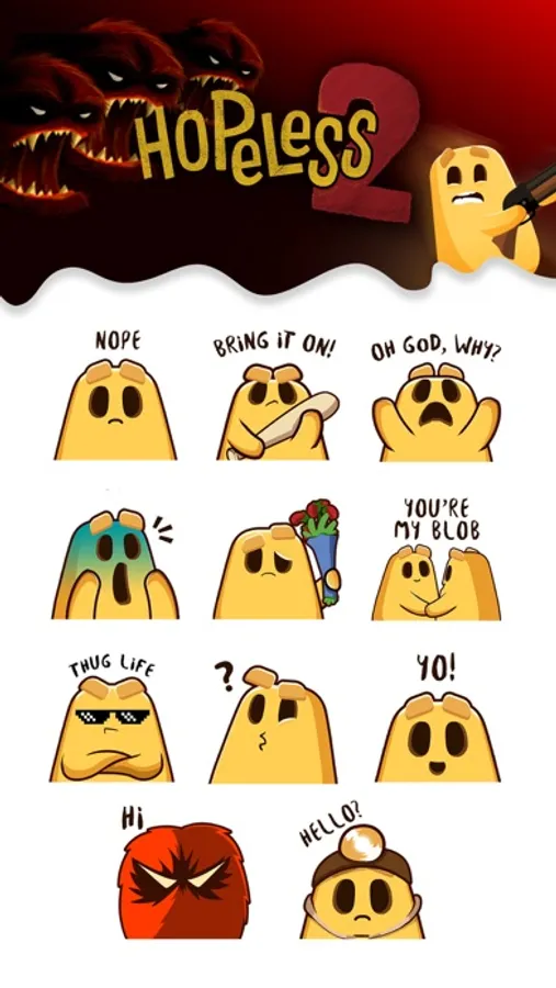 Our cute hopeless blobs can suddenly be seen everywhere! In the middle of conversations, behind your friend's back or even popping out of your beard ready for some monster killing action!