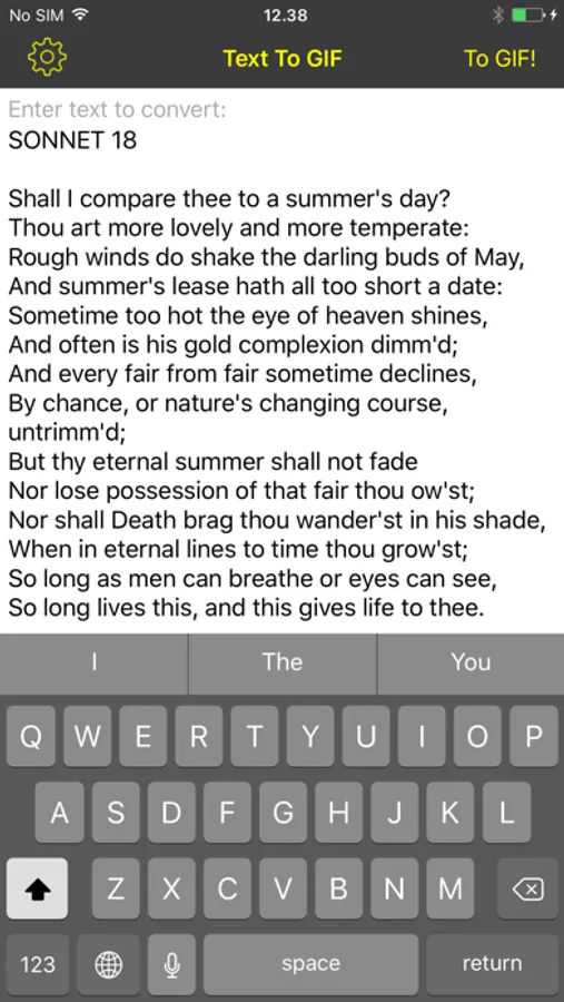 Just paste the text into Text To GIF. Set the color of the paper and the font, add shadow or a background image. Finally, with a single tap, create an exciting, animated GIF image.