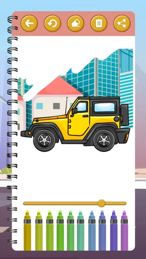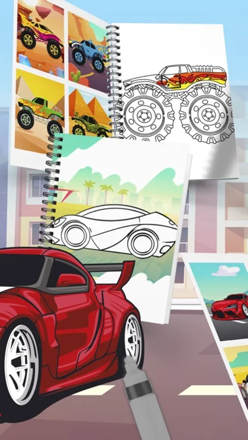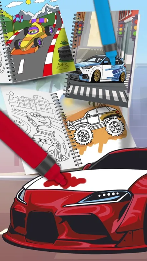 Enjoy the best coloring book app to color or paint pictures and drawings of beautiful cars. Discover the amazing drawings of cars like truck, trains or police car, fire truck, ambulance, tank or other military and civilian vehicles as well as planes, ships and zeppelin!