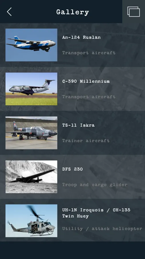 Explore the history of military aviation from the early biplanes of World War I to the latest generation unmanned combat aerial vehicles. Includes all the important fighter, bomber, ground-attack, reconnaissance and transport airplane, UAV and helicopter that shaped the evolution of the combat aircraft. Challenge yourself to see how many you can name!