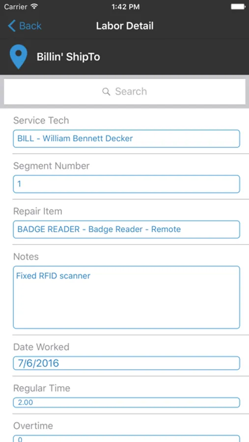 • Technician Location Tracking using Device's GPS (This data can be viewed in the app by selecting Tech Locations from the main menu).