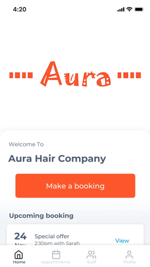 The Aura Hair Company app makes booking your appointments and managing your loyalty points even easier. You're just a few taps away from feeling good and looking great!