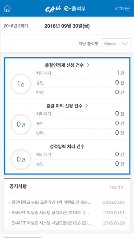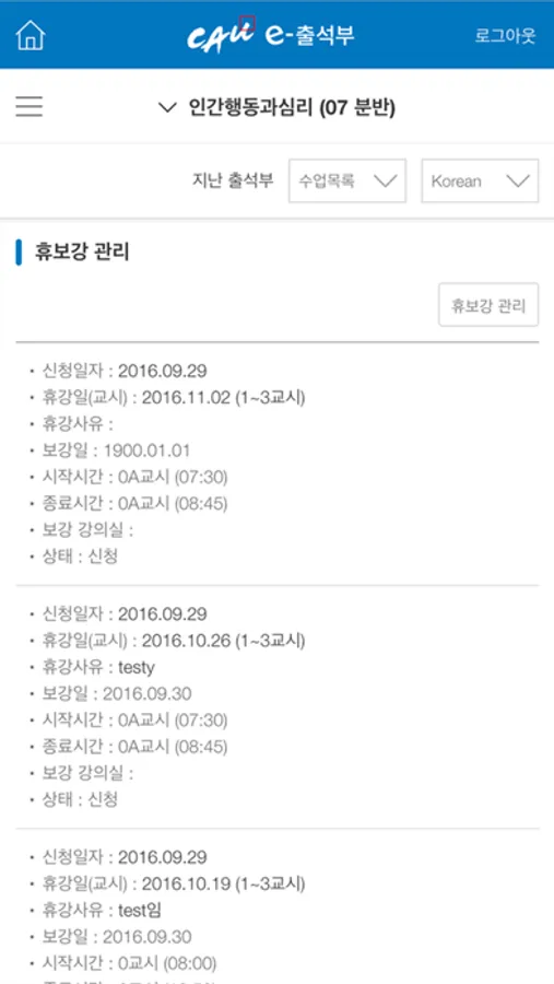 중앙대학교 교강사 전용 전자출석부 앱 입니다.