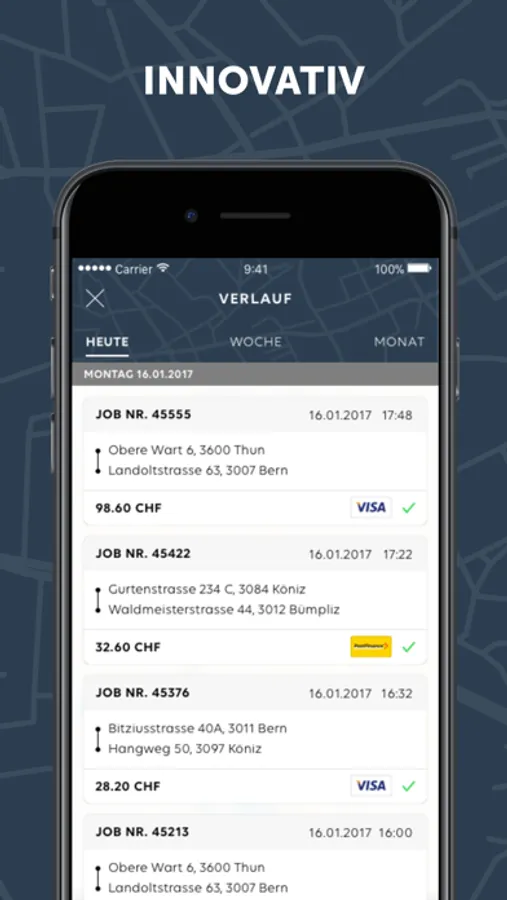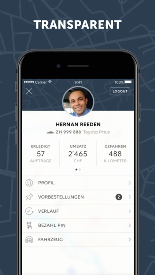 Die go! Fahrer App ermöglicht lizenzierten Taxifahrern den Zugang zu vorbezahlten Fixpreisfahrten in der ganzen Schweiz via iPhone und iPad.