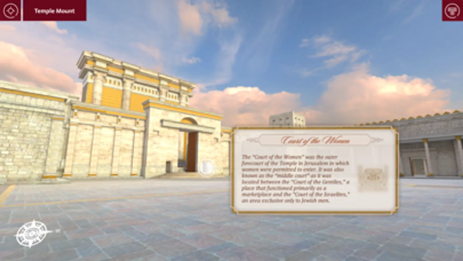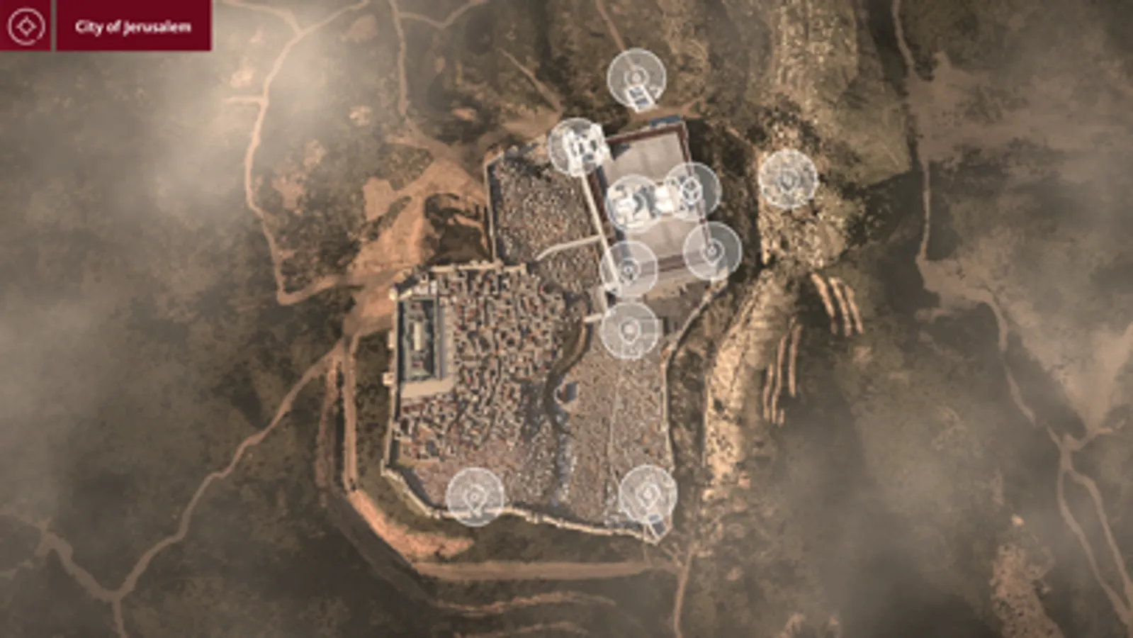 Immerse yourself like never before into ancient Jerusalem. Walk the streets, climb the steps of the Temple, and overlook the beautiful city from the Antonia Fortress. Using your device’s gyroscope, choose from one of many locations in the ancient city and enjoy a 360-degree view of Jerusalem and the surrounding hillsides. You can also explore the Temple Mount in a ground-level walkthrough helping you visualize the significant events in the life of Jesus and his apostles that occurred there.