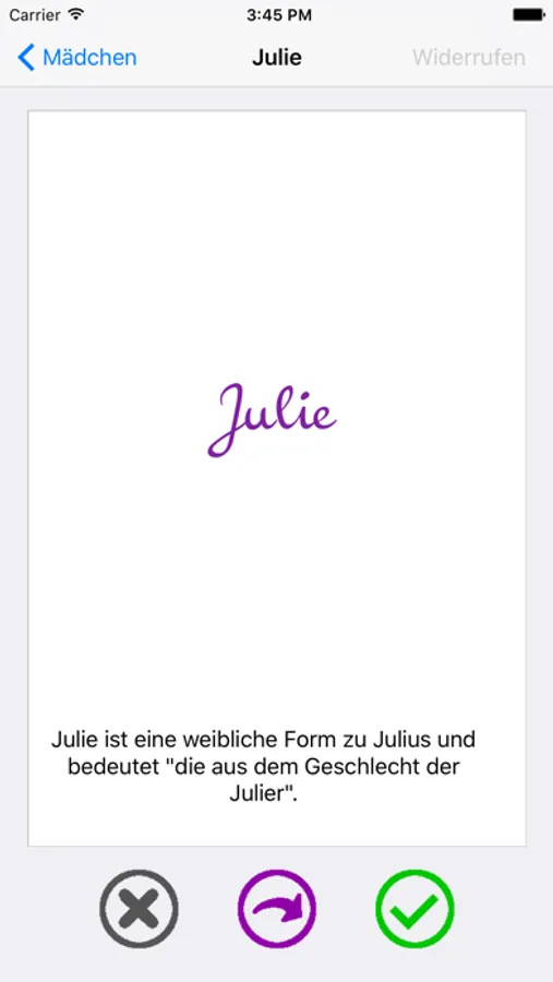 Swipe dich ganz einfach zum perfekten Babynamen! In diese Version bekommst du eine Kostprobe und kannst die App einfach mal ausprobieren. In der Vollversion gibt es dann die kompletten Namenslisten mit über 1200 Namen.