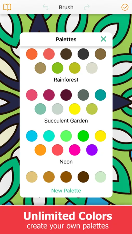 ◆ Brush lets you create an unlimited number of custom color palettes.