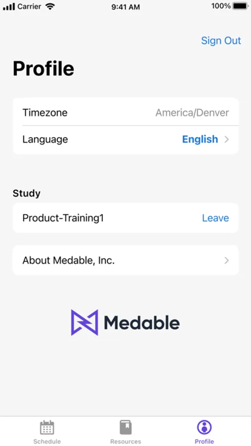 This application serves as a test bed for the various features and functions of the Medable platform. Researchers can configure their study, tasks, and steps and visualize them in this app. Researchers can also use the Medable Participant App to access Health data that is collected by your mobile device.