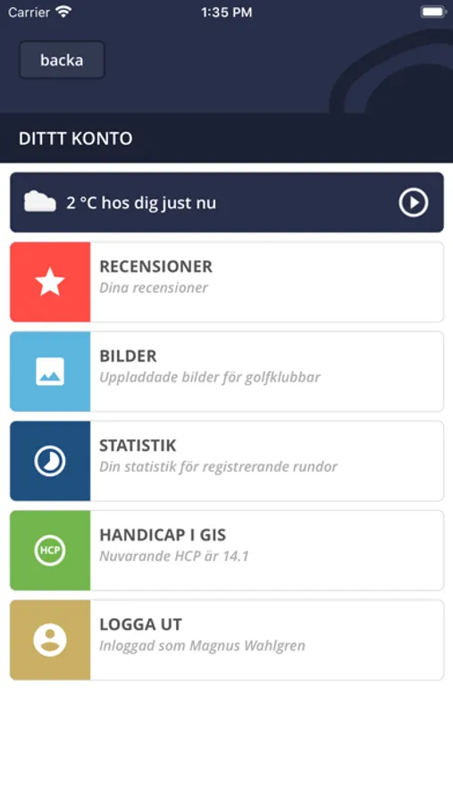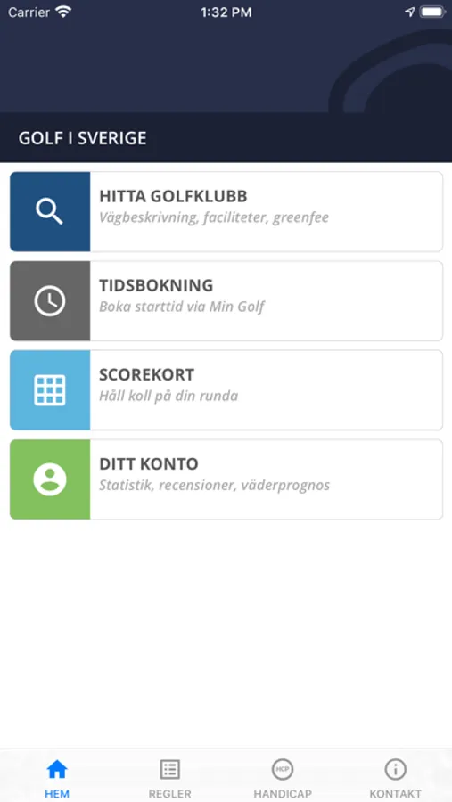 Golf i Sverige är din digitala golfguide som erbjuder scorekort med interaktiva kartor och GPS-avstånd, tidsbokning, golfregler, väderprognoser, m.m..