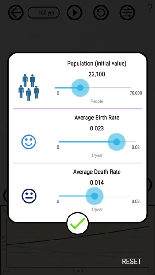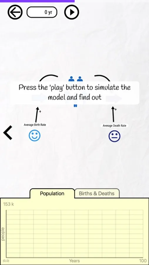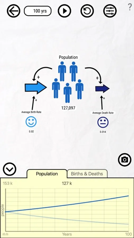 In Population Planner, you'll see one of the simplest population models. Experiment with the model, change the average birth and death rates and see whether the population grows or shrinks.