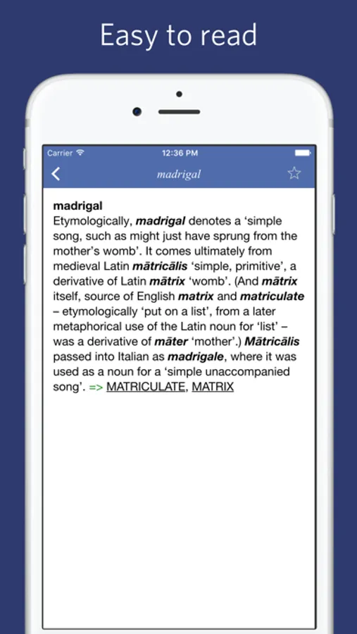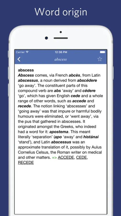 This app provides a searchable, browsable version of "Dictionary of Word Origins" by John Ayto.
