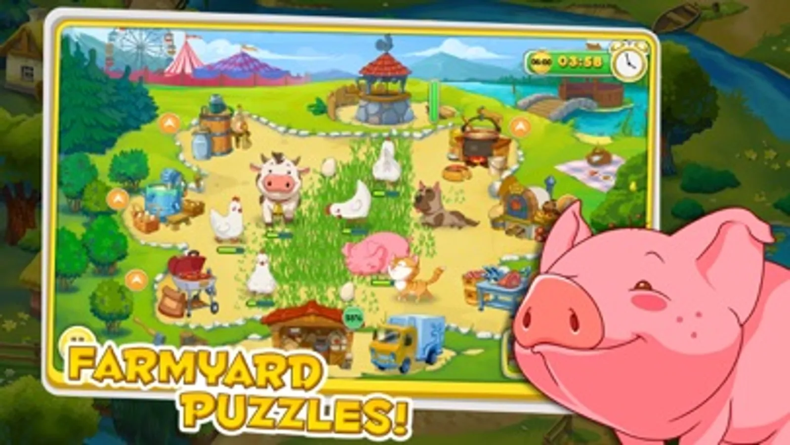 Do you know the secret to happiness? They do on Jolly Day Farm! All the animals have fun, every day! The pigs love the mud, the cows chew the cud, and the chickens cluck as they warm their eggs. Even the cat and dog manage to be the best of friends.