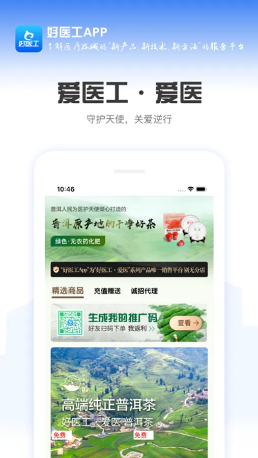 【好医工·爱医】新增爱医商城,普洱茶、咖啡隆重上市!分享给亲朋好友下单后并得到返利。