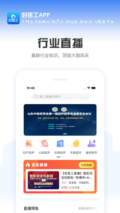 【行业直播】每年1000+场线上直播,大咖直播间、医疗行业直播,涵盖海量的行业直播内容,随时观看直播回放。