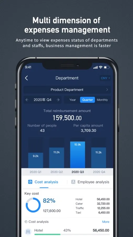 Data cloud storage, easy synchronization, diversified presentation of complex data, cross-analysis of multi-dimensional cost data, real time control of organizational expenses, providing a visual global perspective for enterprise.