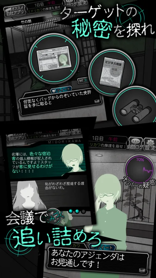 ・疑いをかけてくる人物の弱みを握り、黙らせるゲームです