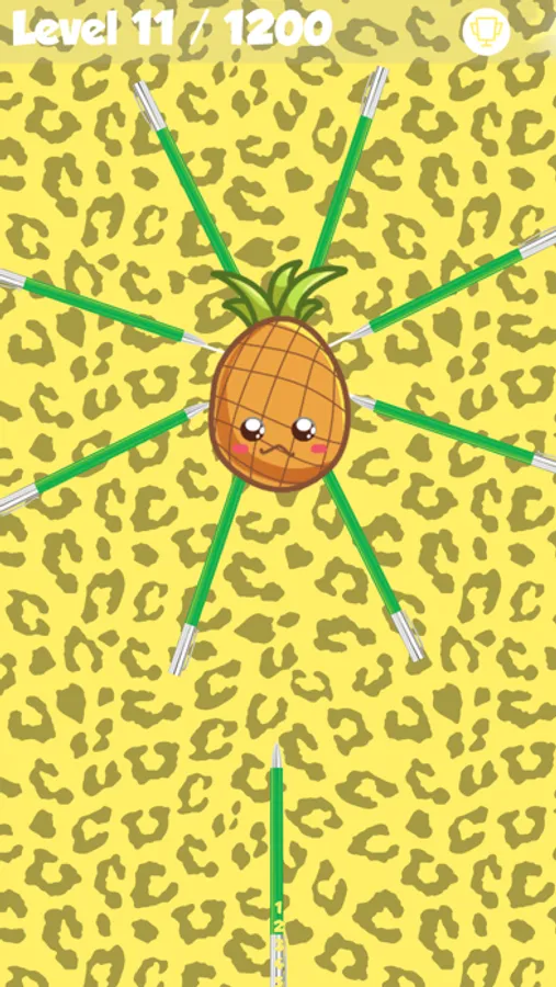 GAMEPLAY: Tap your screen to shoot the PEN to your target APPLE or PINEAPPLE without hitting any other PENS. Pass through hundreds of very unique levels!