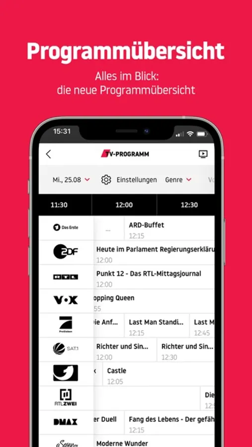 Mit "prisma – deine TV-Programm-App" hast du das Fernsehprogramm immer im Blick. Übersichtlich, einfach, schnell und kostenlos zeigt dir die prisma-App bis zu vier Wochen im Voraus das tägliche TV-Programm.