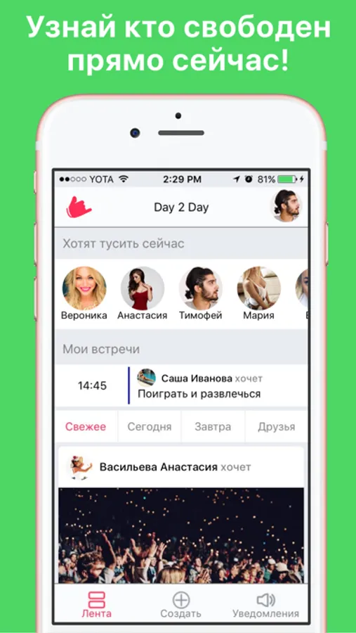 Day2Day — встречайся с друзьями чаще и находи новые знакомства.