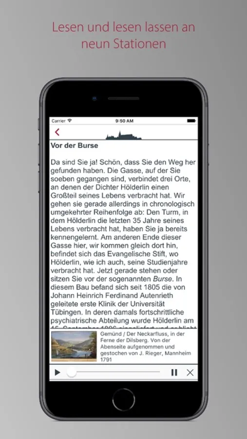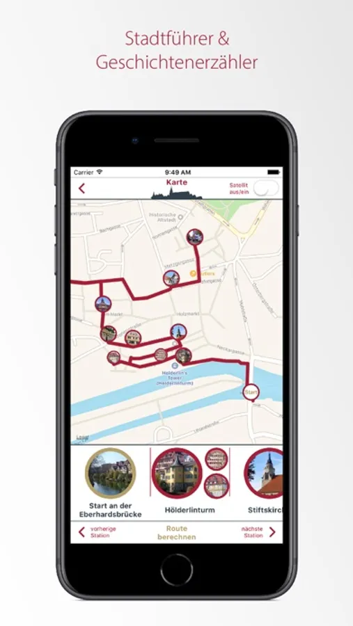 Unsere App ist somit Stadtführer, Geschichtenerzähler und Wissensvermittler zugleich. Wir laden Sie ein, Tübingen in neun Stationen zu entdecken – und zwar an ganz konkreten Orten und anhand der Geschichten, die diese erzählen. Vom Pflasterstein bis zur Kirchturmspitze…
