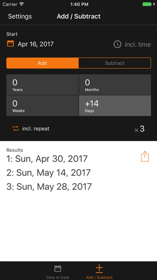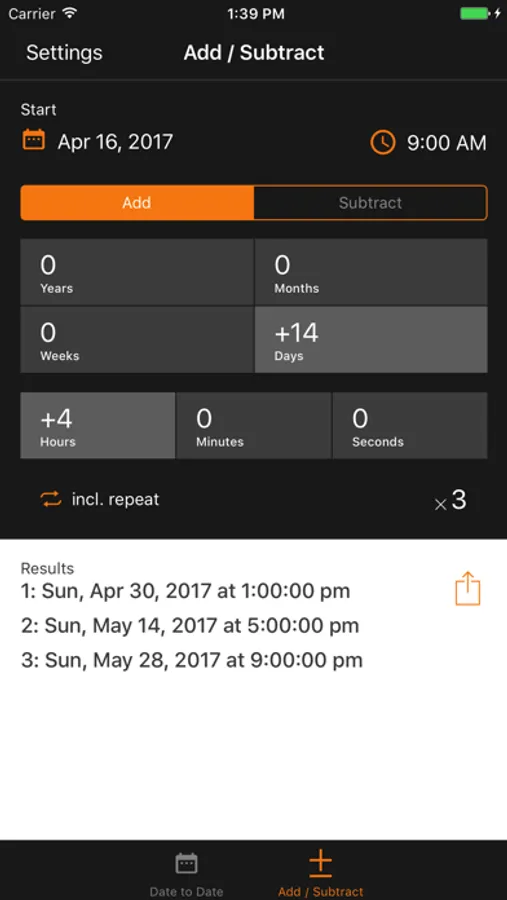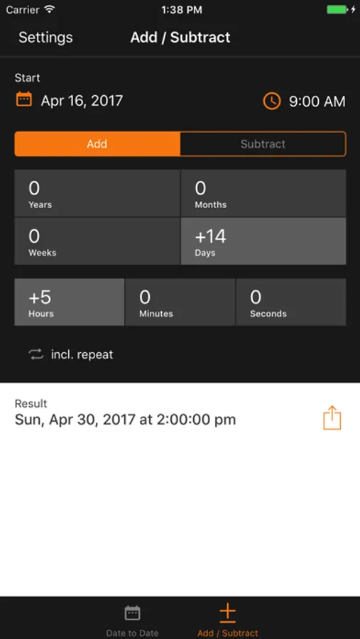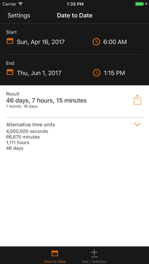 • Include time of day to calculate the exact duration down to the second.