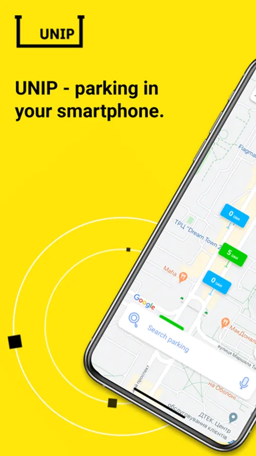 UNIP is a free and universal mobile parking app that allows you to find parking, get directions on a map and pay with a bank card for a parking space near your destination:
