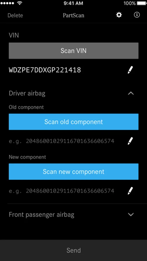 The "Mercedes-Benz PartScan" App provides you, as a service representative, with a fast and reliable solution for documenting vehicle components. The intuitive operation makes it easy for you to scan and transfer the vehicle identification number (VIN) as well as the serial number of the old and new component.