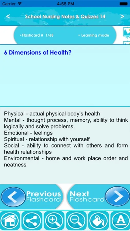 This app is a combination of sets, containing practice questions, study cards, terms & concepts for self learning & exam preparation on the topic of School Nursing.