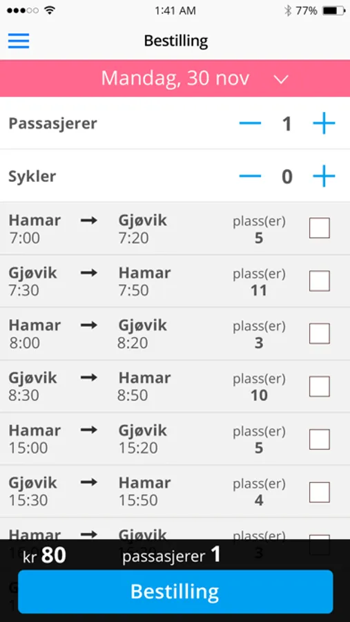 Mjøscharter is a boat service between Gjøvik and Hamar. This app allows booking of seats between those cities.