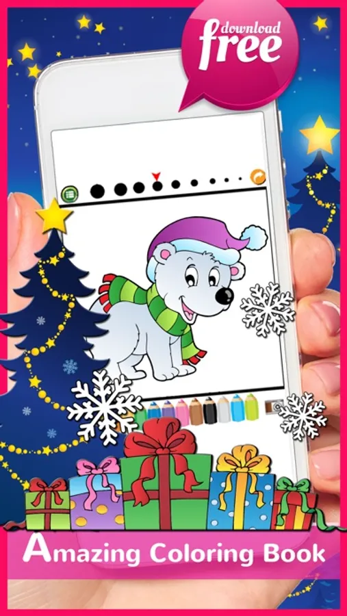Christmas Coloring Book! With full bright color and colorful brush is a funny app to motivate children's creative ability.