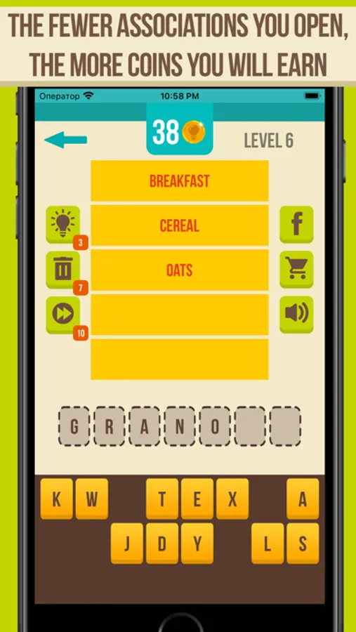 The association word game provides you with a fun way to flex your brain. Guess the word by 5 associations by opening them one after another. The fewer associations you open, the more coins you will earn, since every unopened association is a coin to be added to your purse. There are three tips that will help you in difficult situations.