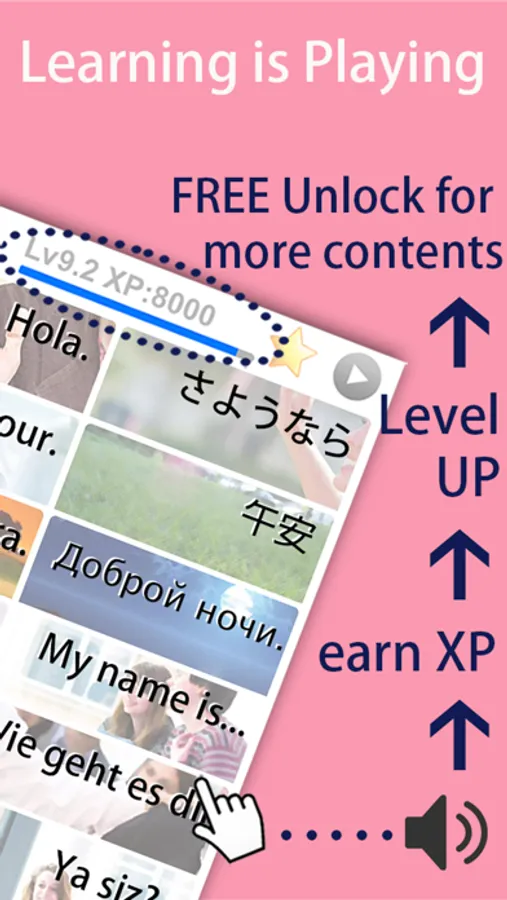 “Simple and practical!”“I love this app. The images are pretty and stylish paintings.”“The level-beating system is really a good design. It gives me motivation to learn!”“It’s a high quality app! Strongly recommended.”“It’s free but perfect!”--- Fun and Relaxing Learning Experience --- Let’s learn like playing games!Play cards, get experience points, beat the levels and collect new cards for free! This app adopts scientific methods, real-life teaching experience and game elements to raise your interests and enable you to learn effectively.--- Nice Pictures with Voice, Various Learning Modes --- Look at the beautiful cards, listen to the voice and try to speak! Learn vocabulary effectively in an enjoyable way! Various learning modes:・One-card Mode: Enjoy learning from the pretty paintings ・Overview Mode: Quickly overview all the cards ・Shuffle Mode: Help to memorize and examine your learning--- Absolutely FREE to Promote Levels --- More than 30 levels. Well classifying into different categories from easy to difficult. It allows you to learn step by step: ・Basic Conversations, Greetings ・Numbers, Colors, Animals, ・Restaurant, Food, Vegetables, Fruits・Sightseeing, Transportation, Shopping, Hotel (newly added)・Body, Date, Family, Directions, Weather (newly added)・Occupations, Hobbies and more (coming soon)We encourage you to spend time to beat the levels and learn on the way (or pay to skip some levels if you prefer).--- 50 Languages Translated by Native Speakers ---Our international team loves promoting foreign languages and diverse cultures. Words and sentences are written by native speakers. 50 Languages includes:English, American English, French, Spanish, Mexican Spanish, German, Italian, Russian, Japanese, Simplified Chinese (Mandarin), Traditional Chinese, Cantonese, Portuguese, Brazilian Portuguese, Korean, Turkish, Dutch, Swedish, Polish, Arabic (Gulf), Egyptian Arabic, Norwegian, Finnish, Danish, Thai, Vietnamese, Indonesian, Hungarian, Czech, Slovak, Greek, Latin, Romanian, Hindi, Swahili, Bengali, Latvian, Albanian, Croatian, Serbian, Bosnian, Macedonian, Armenian, Afrikaans, Esperanto, Catalan, Tamil, Icelandic, Welsh, Haitian Creole…etc.--- Start Your Learning Adventure with the Best App Now! ---