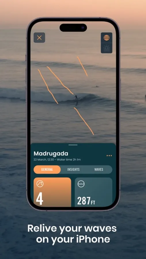 • Surfline compatible: watch back any wave you ride in front of a Surfline camera