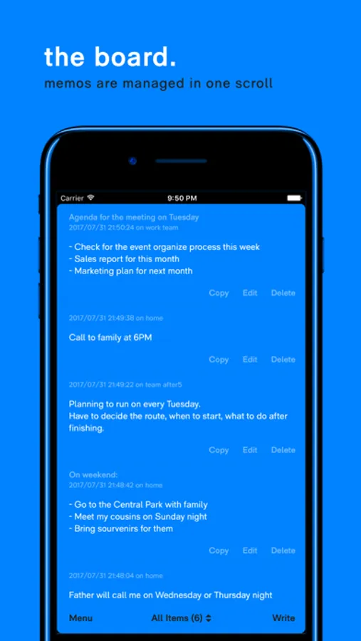 textboard2 provides the smartest way to clear your mind. Using tags, you can organize your thoughts, tasks, executions, data, and more.