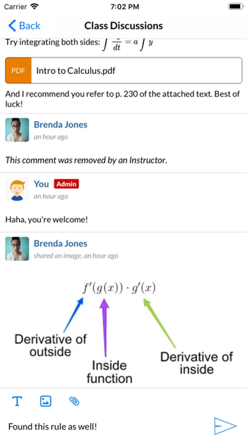 Since Acadly is realtime, all the members of a course get instant in-app and push notifications.