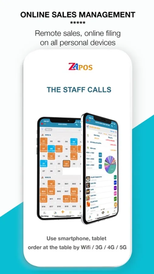ZaPOS supports Wifi / 3G / 4G / 5G so almost every device has no difficulty connecting the system.