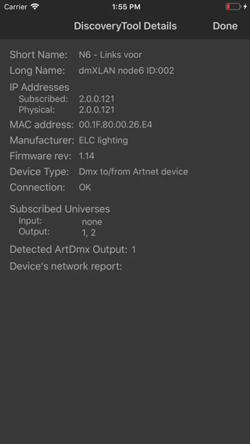 This tool does exactly what the name suggests; it discovers Art-Net compatible devices in your network. It will show you the name of discovered devices, what type of devices it is and it's IP address. There's also an details page to show you about everything there is to know about your node's and fixtures (ports, universes, ip, actual dmx, manufacturer, connection test, ect.)