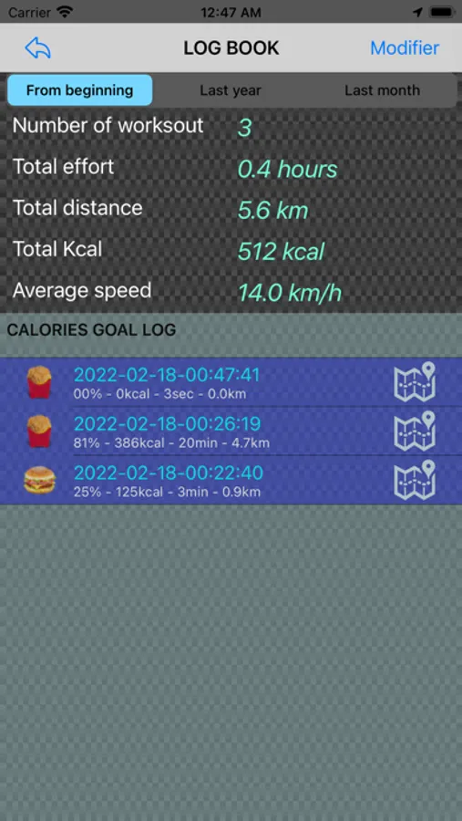 At the end of the session, you can share your challenge with your friends on FaceBook or Tweeter, and keep a track on the iPhone calendar and on the "Log Book" integrated at the application.