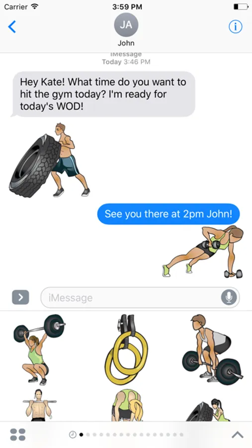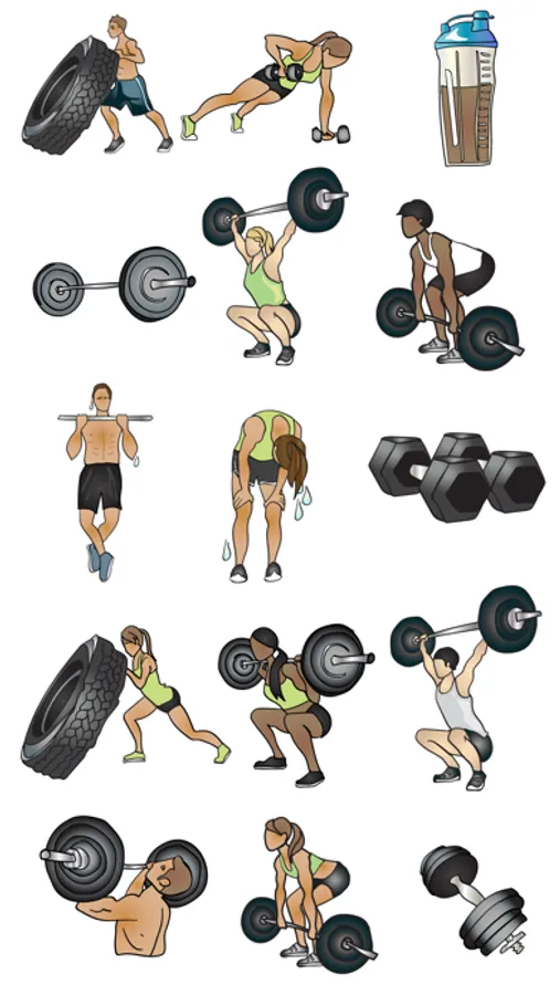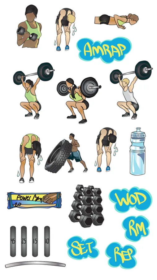 Share your WOD in a fun new way, with these CrossFit/Weightlifting stickers. Stack weights on the bar, push a tire across your screen or brag about how early you're hitting the gym. Whether a beginner or seasoned pro, everyone can enjoy adding some muscle to their texts now.