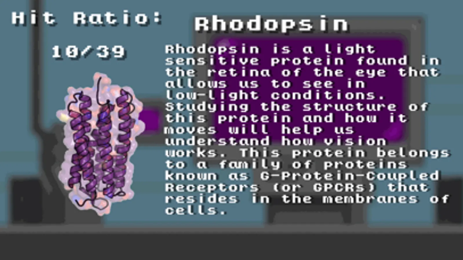 XFEL is an educational game that is designed to deliver the basics concepts of protein crystallography using a fun and current platform. Players will be given control of a high-powered X-ray source known as an X-ray Free Electron Laser (XFEL). As the player progresses through the game, they will learn of the importance of various proteins and how we can use their structures to learn more about the world around us.