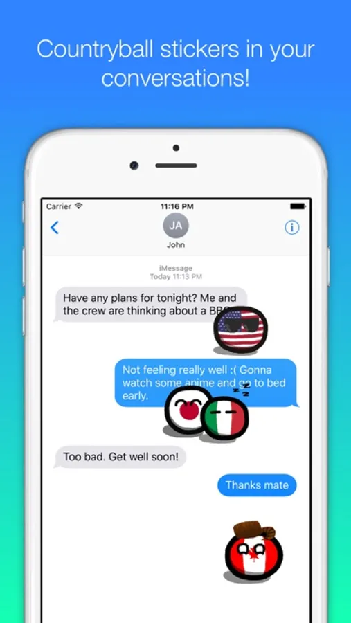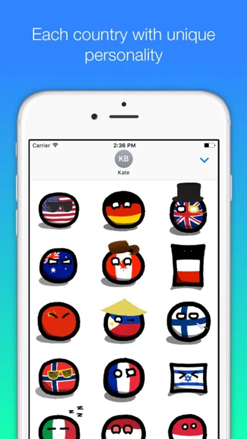 Countryball stickers for iMessage contains: